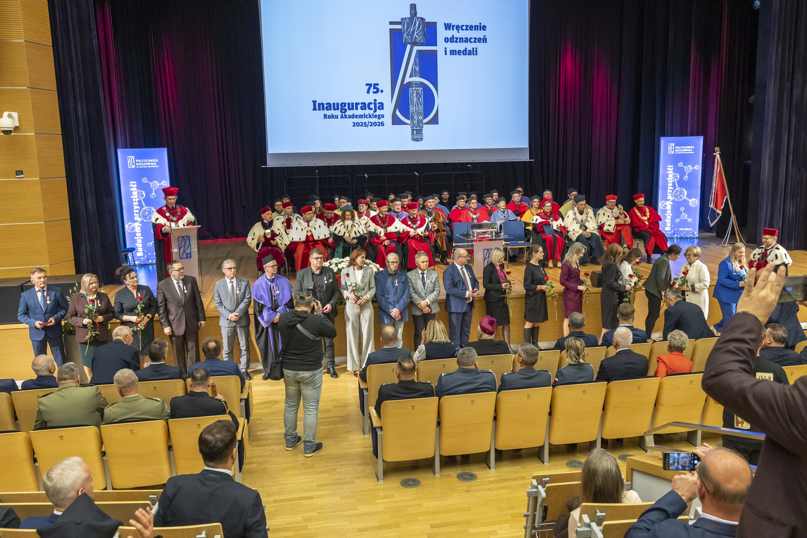 „Inauguracja roku akademickiego to nie tylko uroczystość, to także moment refleksji nad tym, czym jest uczelnia, kim jesteśmy jako jej członkowie i dokąd zmierzamy. W świecie pełnym niepewności uczelnia pozostaje jednym z ostatnich bastionów racjonalności, otwartości i dialogu. To nasza odpowiedzialność – chronić te wartości i przekazywać je kolejnym pokoleniom” – mówił rektor prof. Piotr Koszelnik podczas przemówienia inaugurującego jubileuszowy 75. rok akademicki na Politechnice Rzeszowskiej.