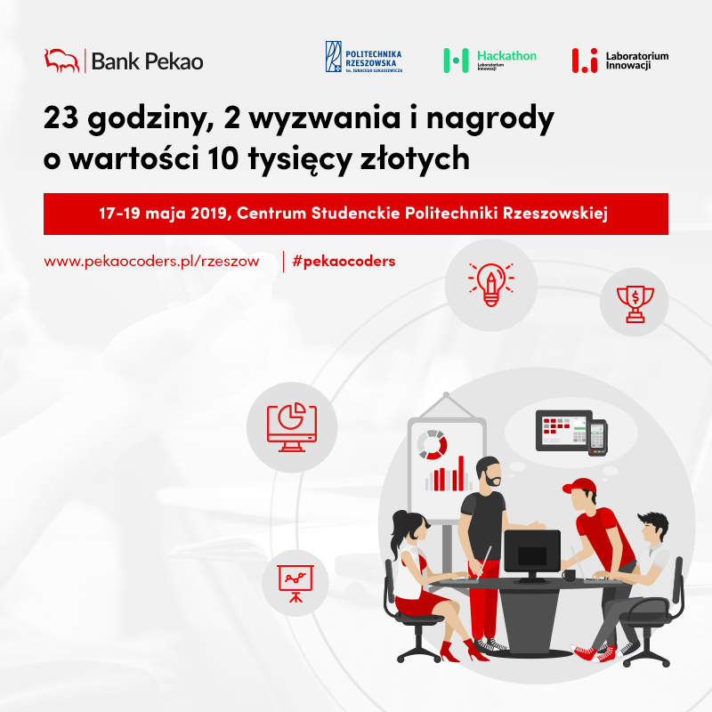 Hackathon PekaoCoders w Rzeszowie odbędzie się w weekend 17-19 maja w Centrum Studenckim Politechniki Rzeszowskiej przy ul. Akademickiej 8. Aby wziąć udział w Hackathonie, nie trzeba mieć ani gotowego pomysłu na rozwiązanie ani skompletowanego zespołu.
